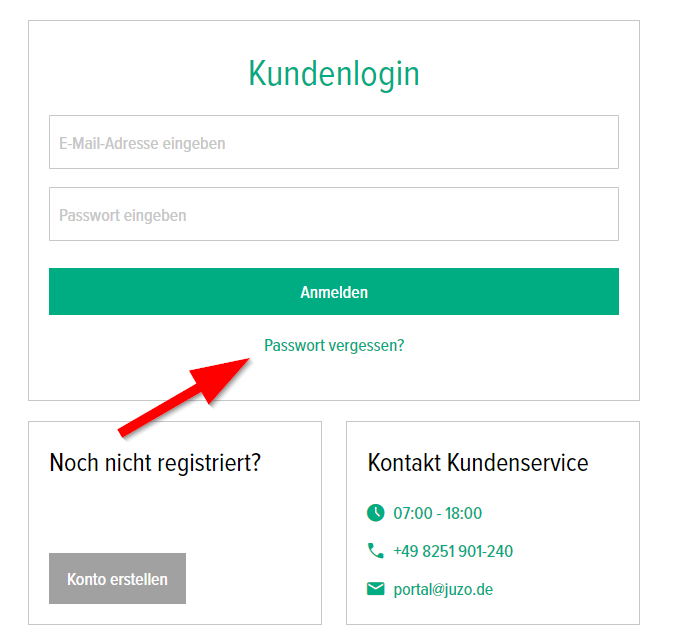 Sie können das Passwort für Ihr Kundenkonto wie folgt zurücksetzen:
